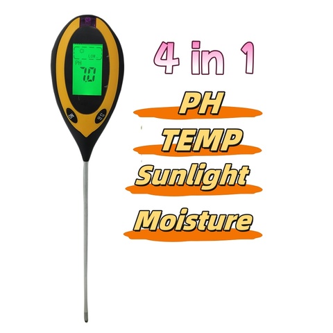 4 in 1 토양 습도 수분 모니터 식물 재배 정원을위한 온도 햇빛 토양 Ph 미터
