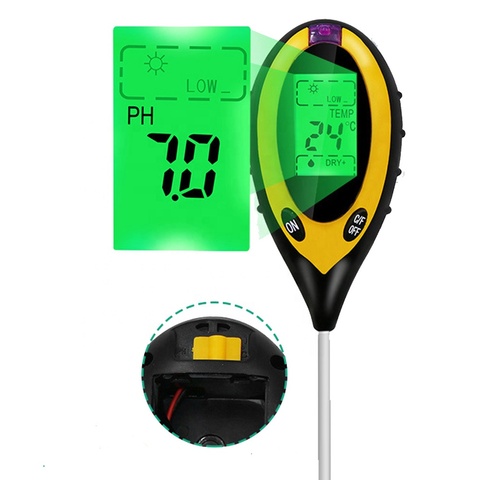토양 탐지기 4 in 1 햇빛 온도 식물 및 잔디 용 토양 수분 PH 미터